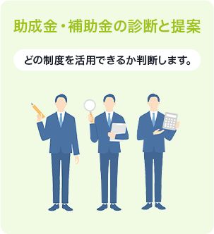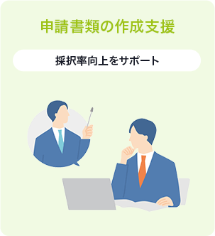 当社では、「事業に最適な助成金の選定」から「申請書類作成サポート」まで、ワンストップで対応します。